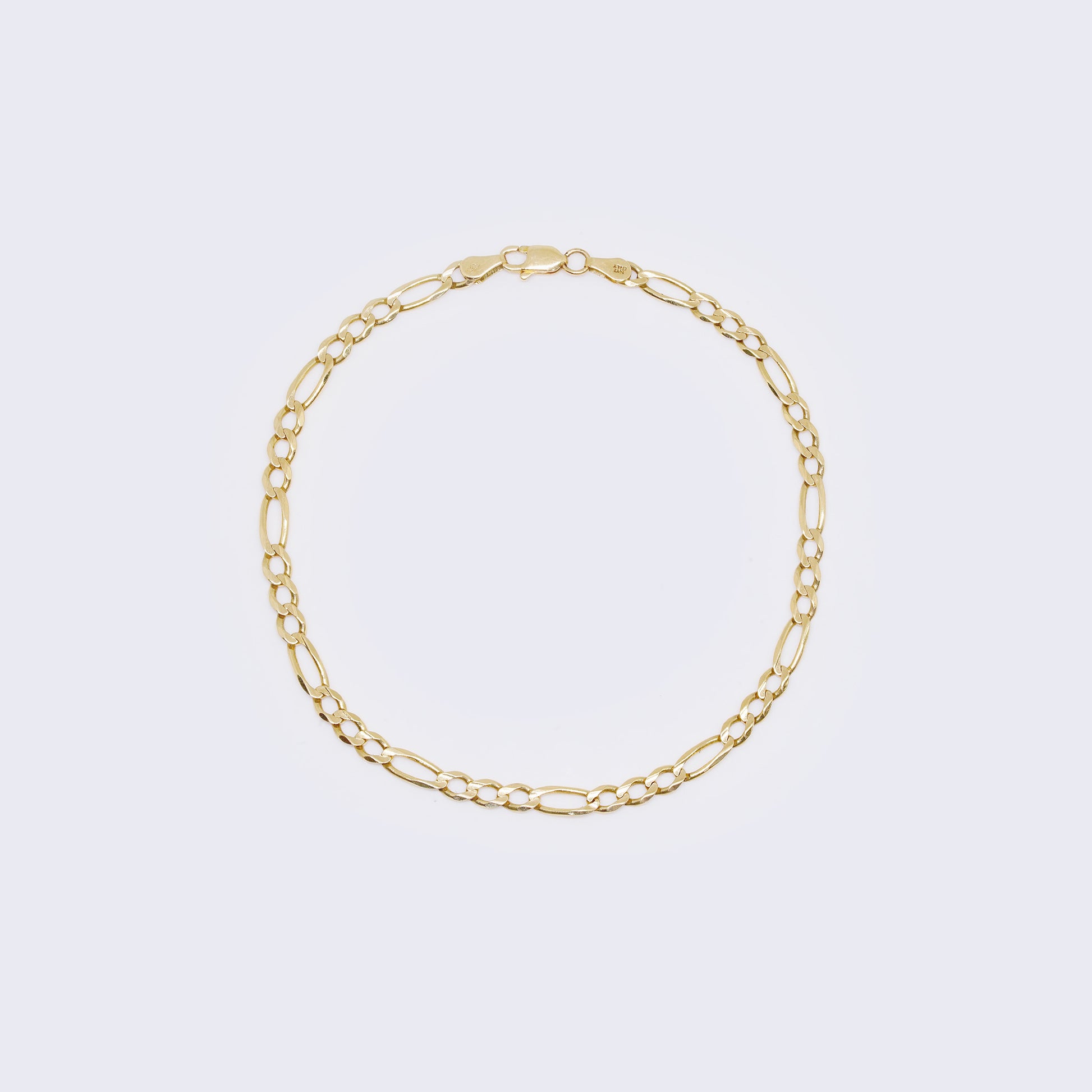 14K Yellow Gold Figaro Chain Ankle Bracelet 9.25" 3.5mm Thickness